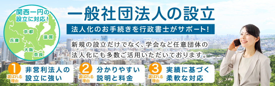 ひかり行政書士法人では、京都府・滋賀県ほか関西一円での一般社団法人の設立手続きに関して、お電話にて代行サービスのお申込み・お問合わせを承っております。